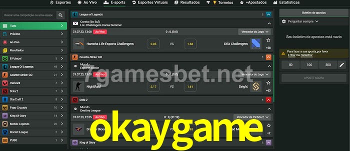 A aposta okaygame oferece aos jogadores a experiência mais conveniente de apostas em eSports!